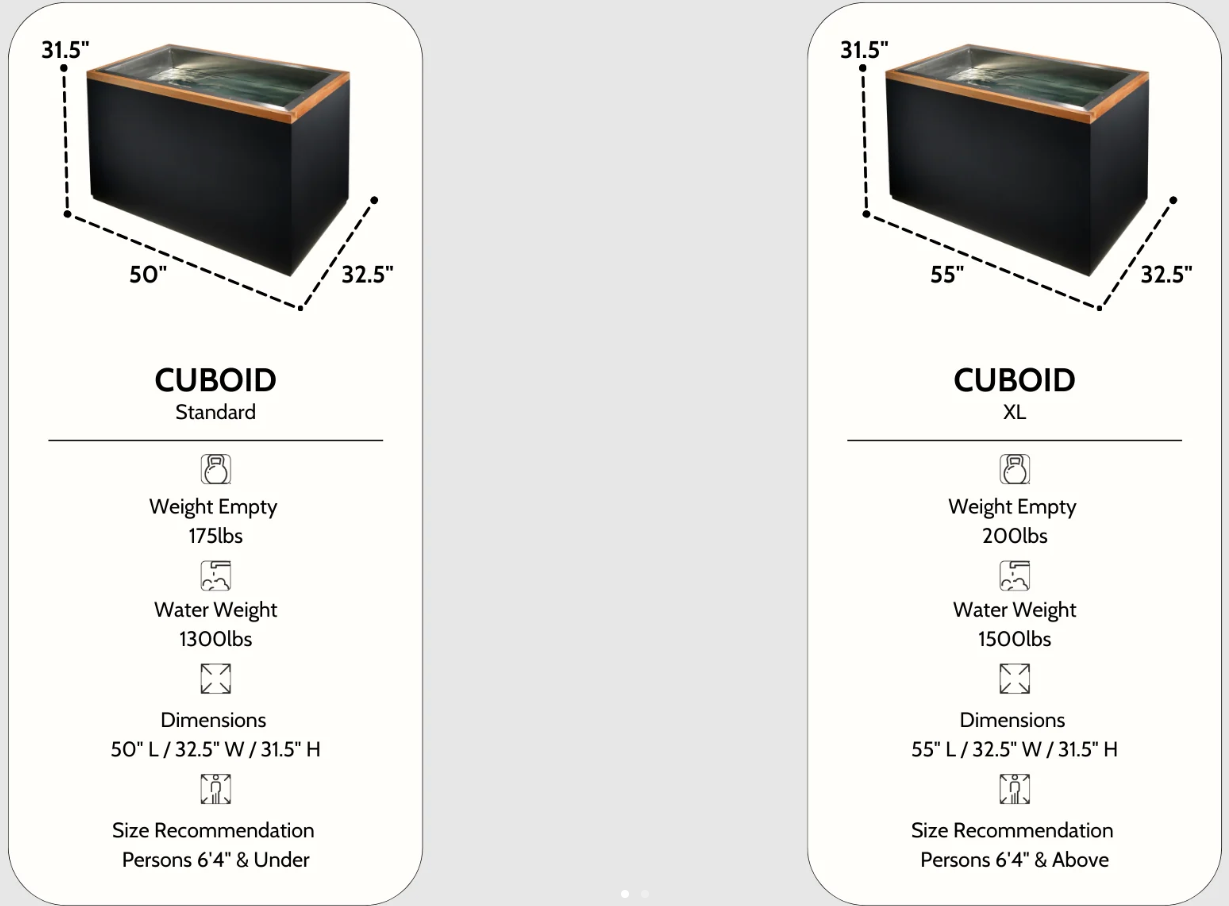- Dynamic Cold Therapy CUBOID Cold Plunge Tub (your choice of model)