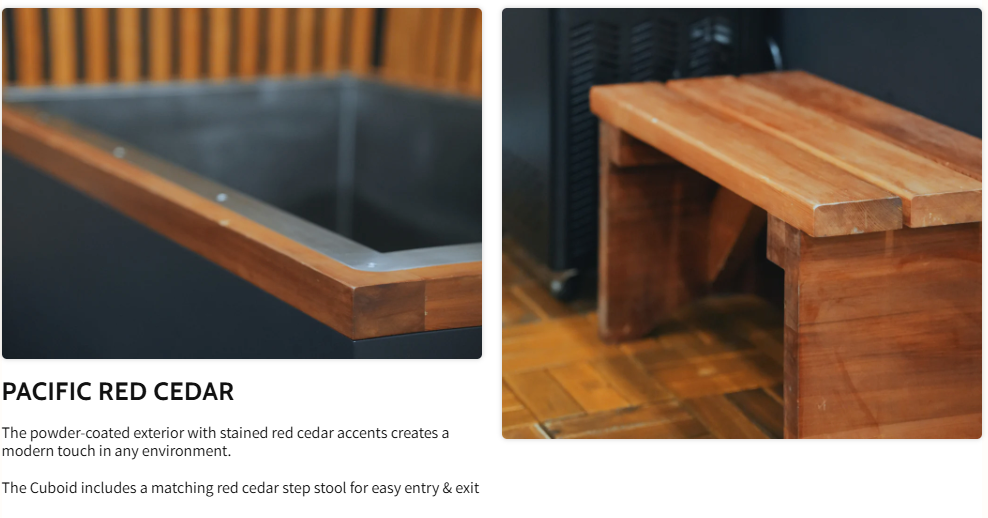 High-Quality Pacific Cedar Step - Included with every model for safe and easy entry and exit from the cold plunge.