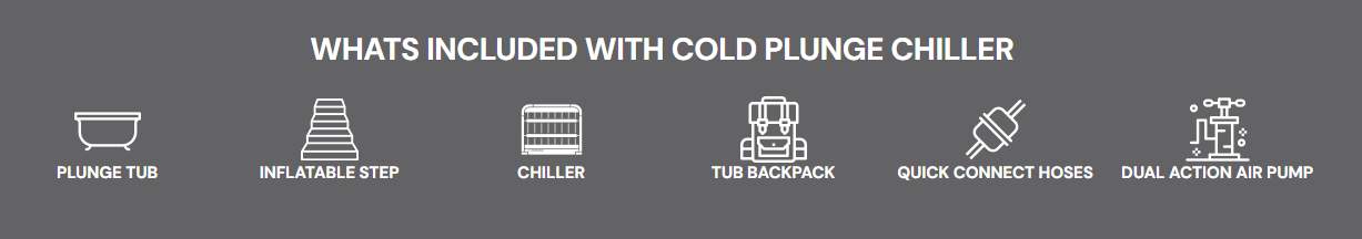 Each plunge includes a tub, chiller, cover, pump, hoses, and filtration components. Clean filters every 4–6 weeks and inspect the system annually to ensure peak performance.