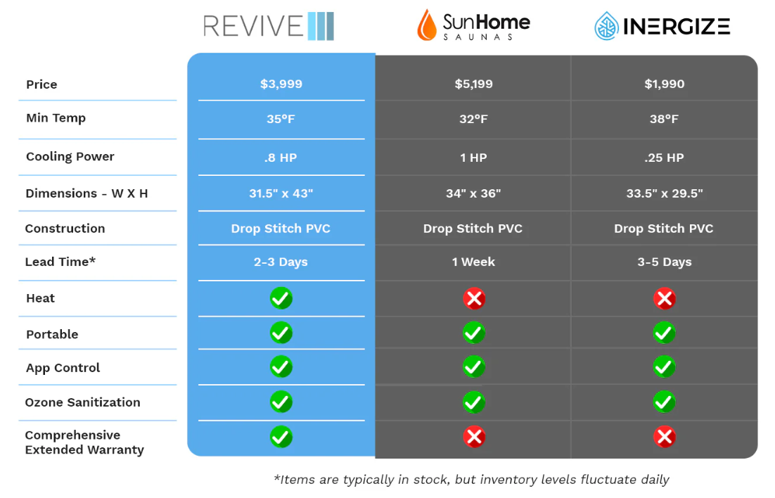 All Revive plunge systems include a two-year manufacturer warranty covering defects in materials and workmanship. Damage caused by misuse or improper installation is not covered.