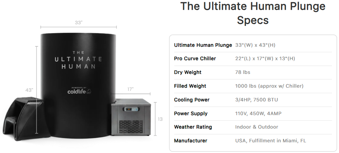 Cold exposure carries inherent risks. Not intended for children under 18 or individuals with certain health conditions without physician approval. Always follow electrical, installation, and water maintenance guidelines included with your unit.
